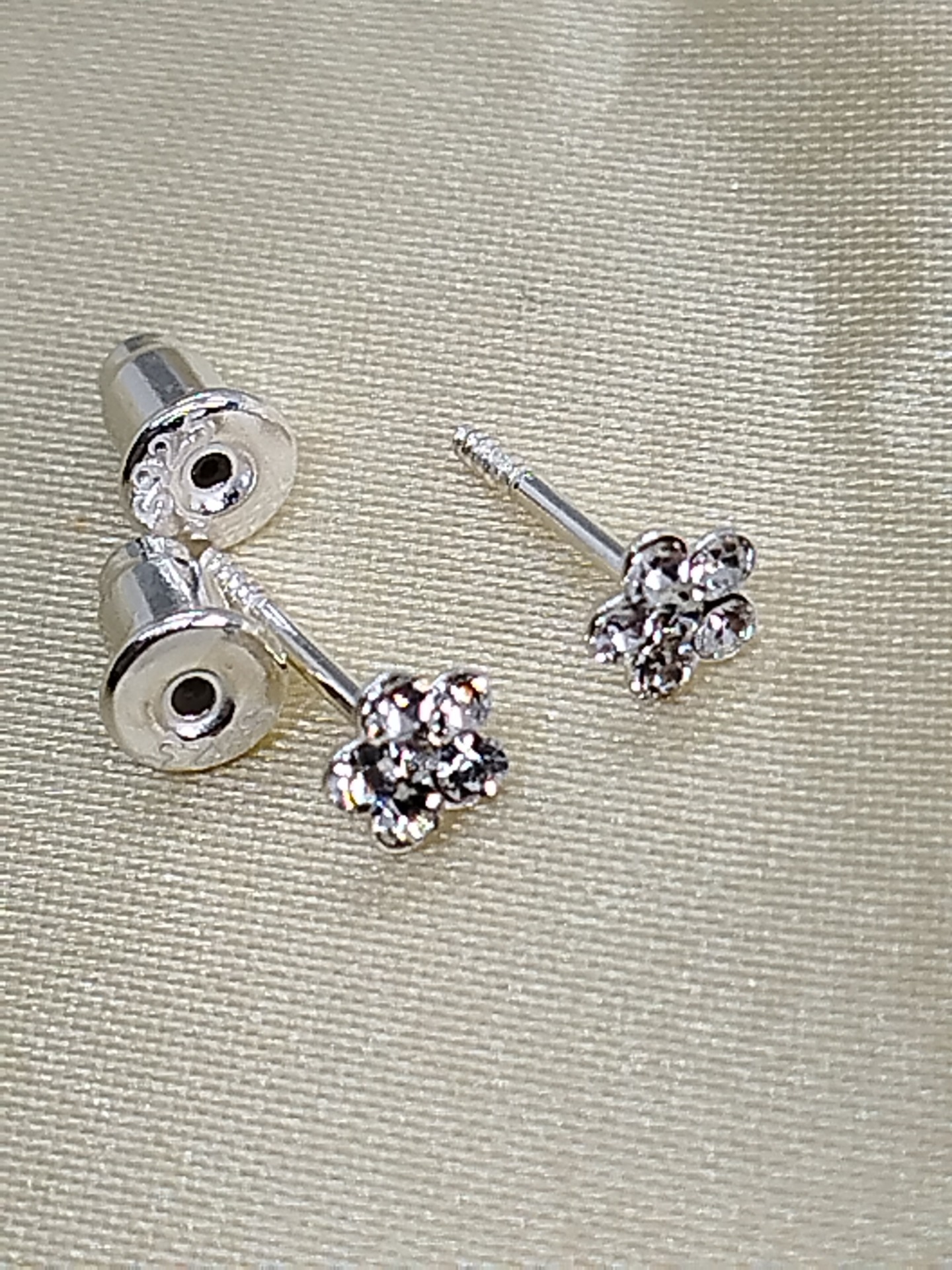 Pendientes modelo flor con circonitas color blanco plata 925Para el bebe Mide flor 4.3mm de diámetro