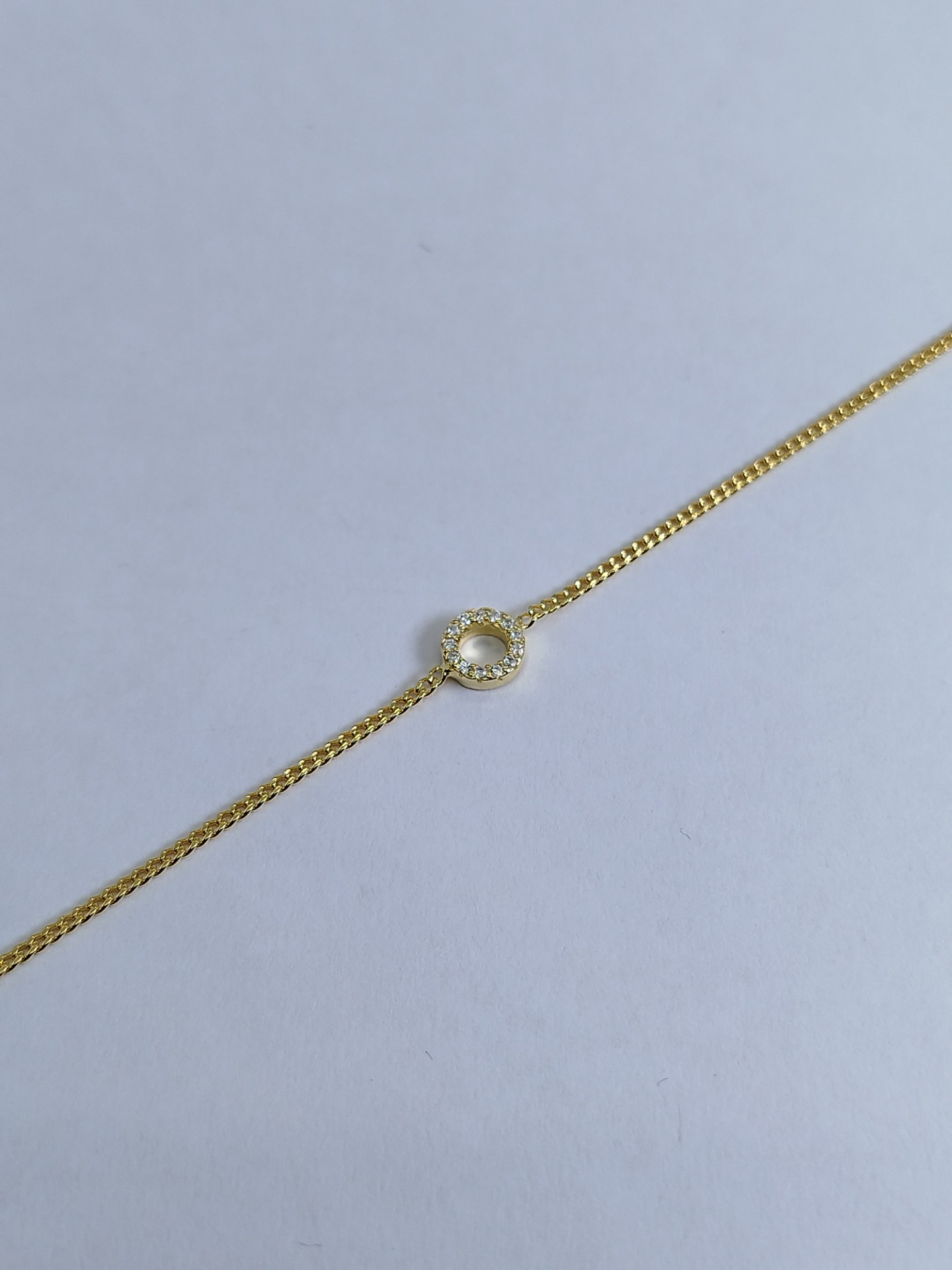 Pulsera con Círculo calado Plata de Ley baño en oro.Mide pulsera 16.5 cm con 3 cm de alargue y 1.6mm de ancho.
